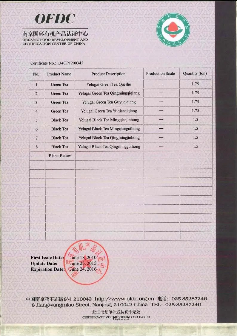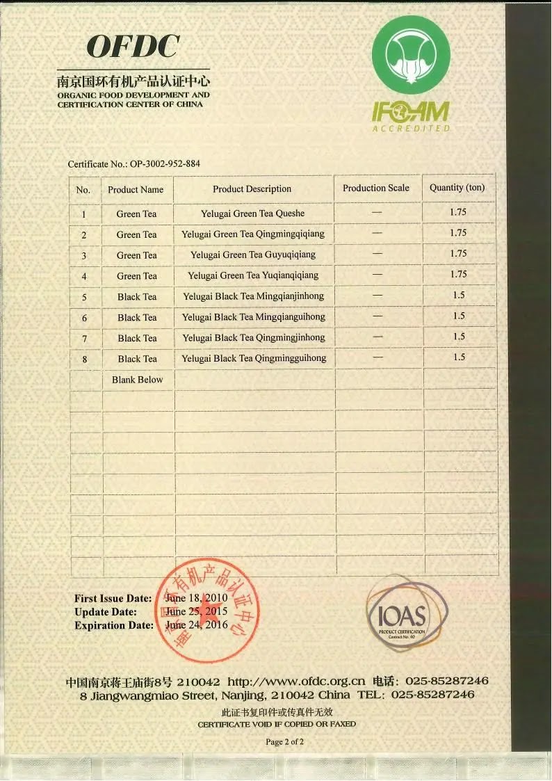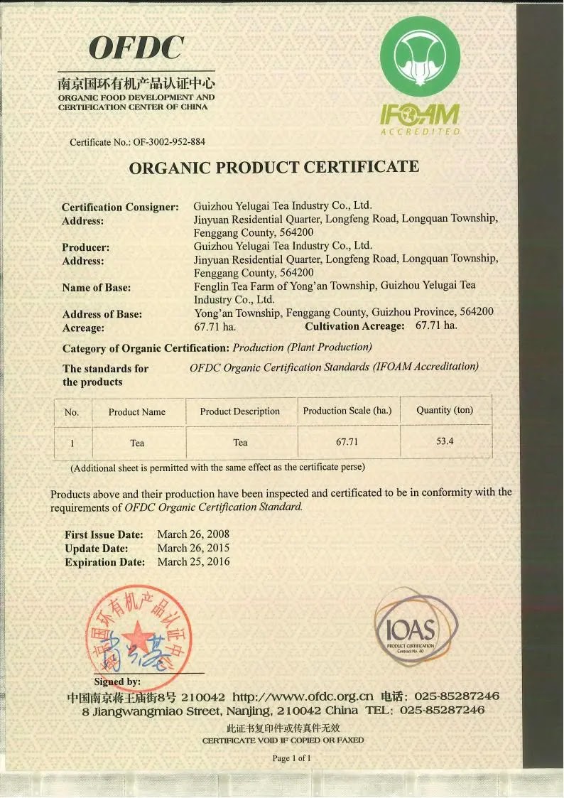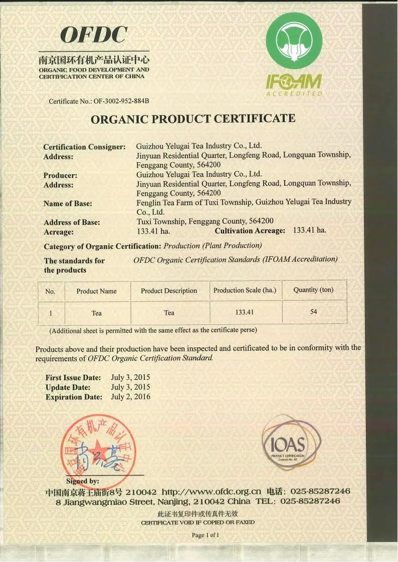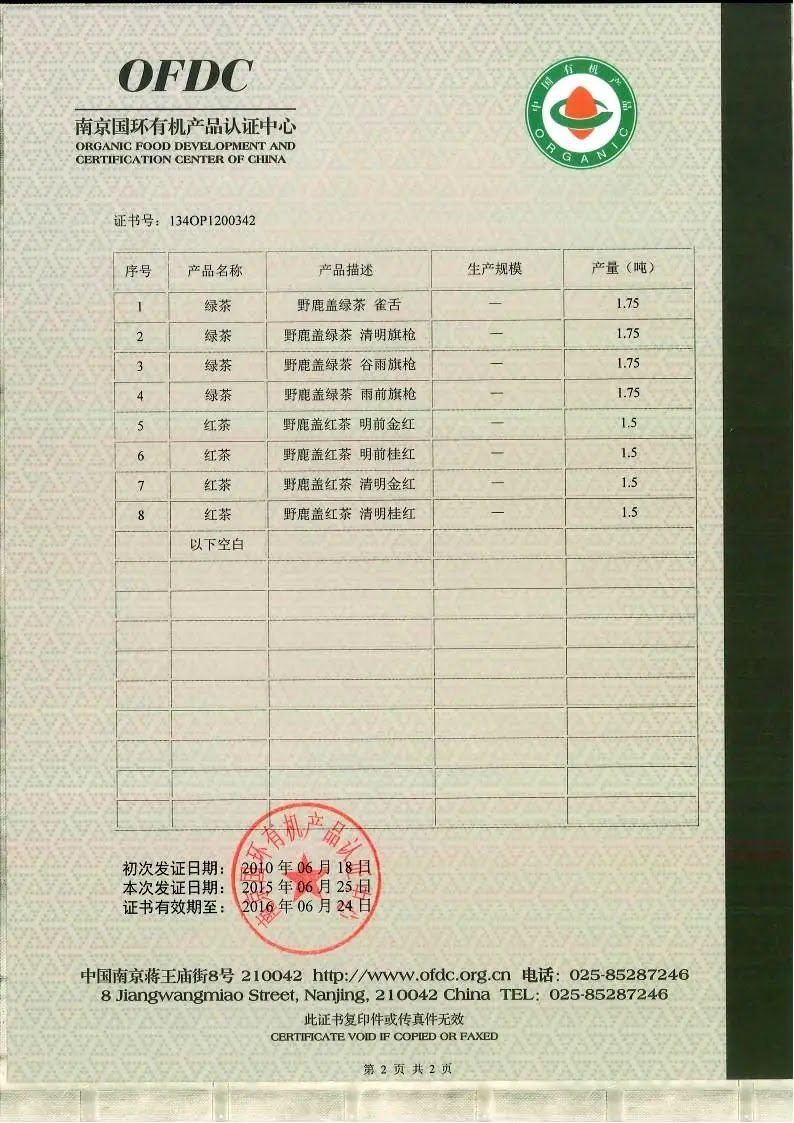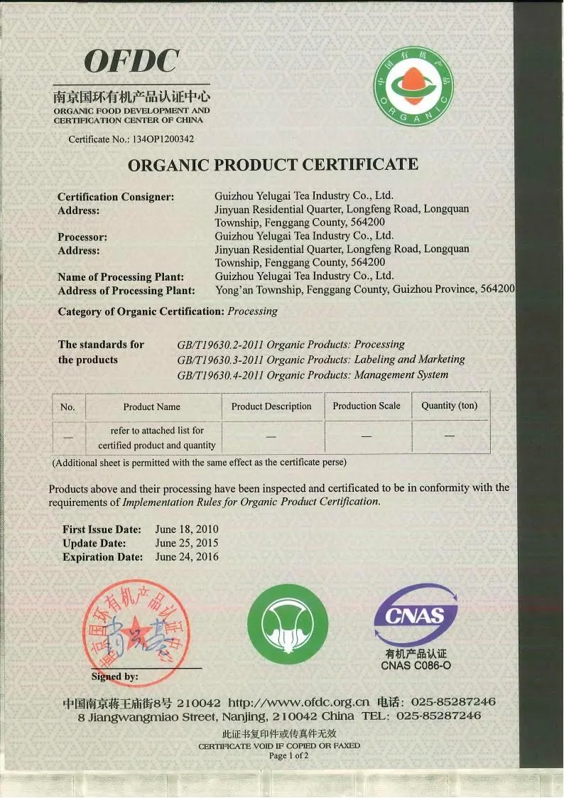 2015年有机产品认证证书
