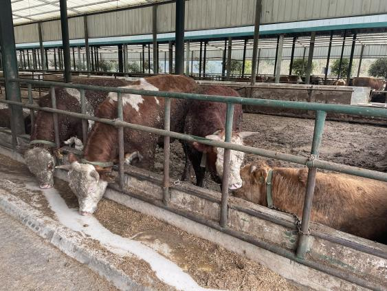 不多时抵达牛场后我们先进行了一番消毒,随后进入了牛厂内部,厂中的牛以思南黄牛和务川黄牛两种为主,它们具有体质结实,肢蹄强健,早熟的特点,具有较好的肉用性能,肉质鲜美,商品率高,属于高品质肉牛,同时也是中国肉牛基因库的宝贵资源。在询问了镇长后,我们得知厂中有上千头牛,每头牛通过特殊的饲养方法可以产出"雪花牛肉",肥瘦相间,极为鲜美,这使得仅一头牛的价值便可高达数万元,而厂中已有上千头牛,足见其产业庞大。