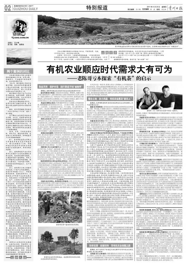 从长远上说,老陈哥的有机茶种植的经营模式是打造贵州高档茶的一个方向。我的一个建议是,老陈哥应该与高水平的茶叶营销企业联合,产业互补、相互控股。这样老陈哥的模式才有可能真正走出来。
